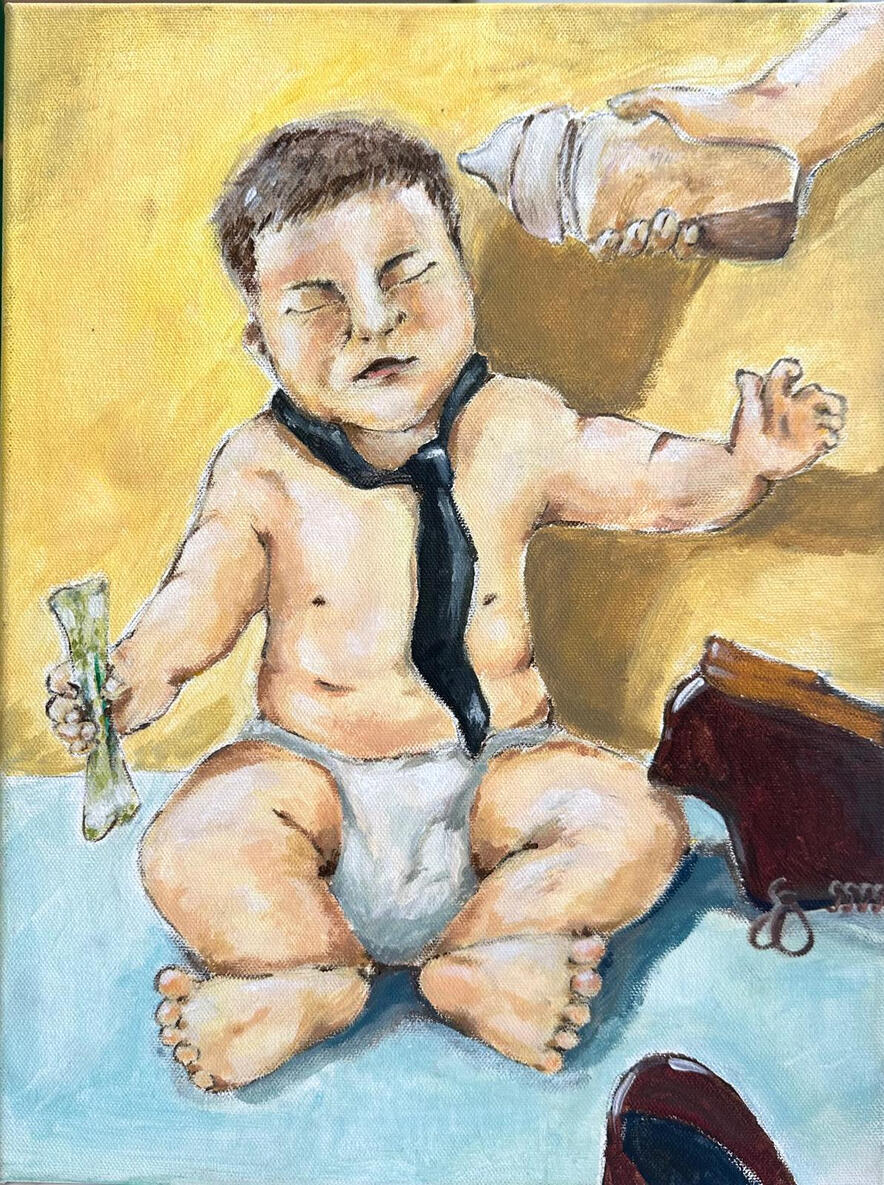 Statement:Boss Baby, made to represent the rapidly-growing economy. The baby represents the current group of working adults, made to financially support their family and themselves, despite their youth and inexperience.